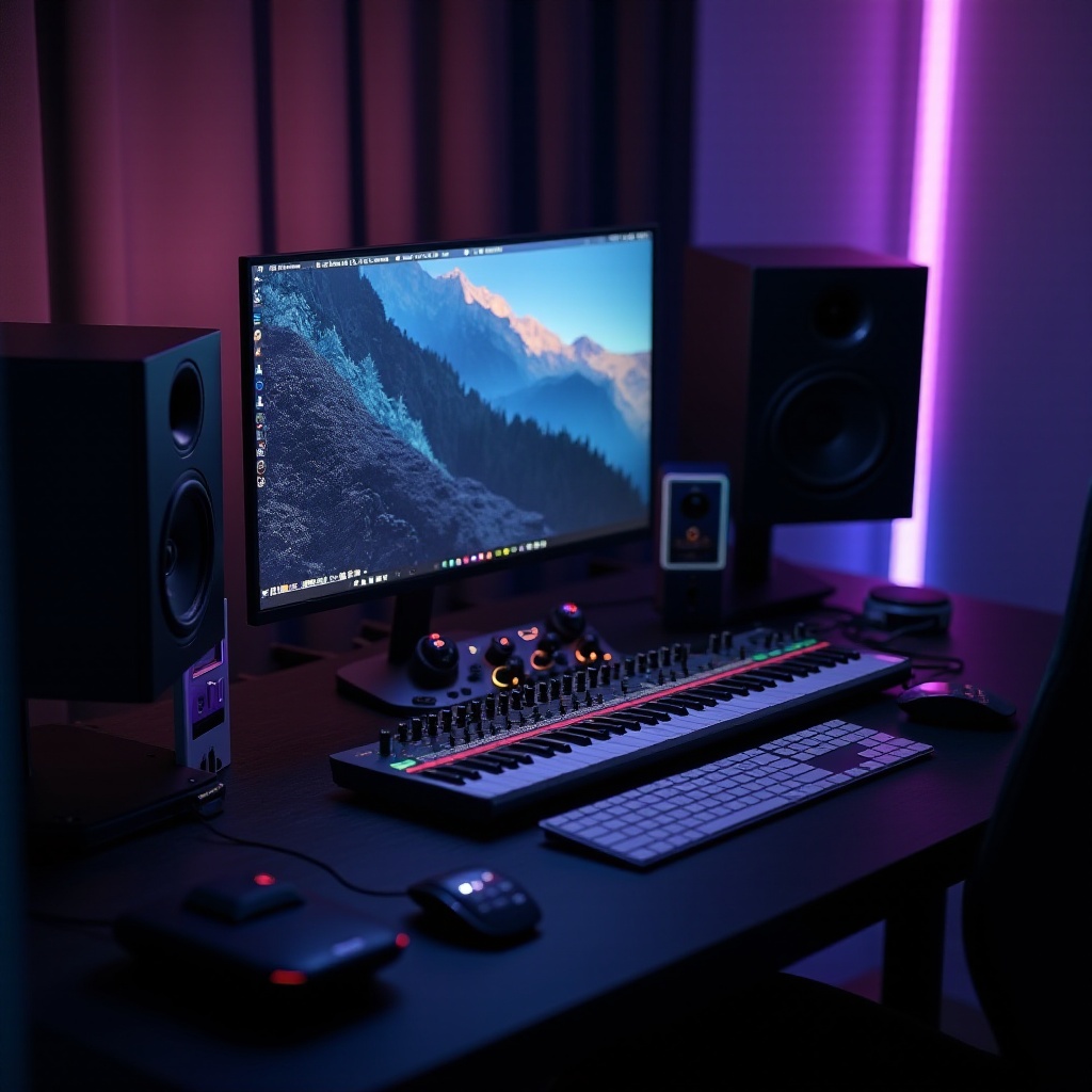 استثمر في مكبرات صوت أستوديو عالية الجودة، واجهات صوتية موثوقة، وملحقات مثل لوحات المفاتيح المحسَّنة لمحطات العمل الصوتية لتحسين بيئة إنتاج الموسيقى الخاصة بك.